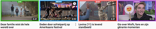 Het is belangrijk dat de thumbnails die gebruikt worden passen bij een product, dienst of merk. Zo was te zien dat NOS een strakkere, meer zakelijke stijl aanhoudt dan bijvoorbeeld #Boos of Beautygloss. Deel van het vermarkten van video’s is het weten op welke kanalen ze waarschijnlijk bekeken worden. Creëer meerdere thumbnails in verschillende formaten om erachter te komen welke strategie het beste werkt. Zorg er in ieder geval voor dat er altijd thumbnails gemaakt worden die de inhoud van de video’s reflecteren. Misleidende thumbnails leiden misschien in eerste instantie tot meer views, maar uiteindelijk niet tot trouwe kijkers.