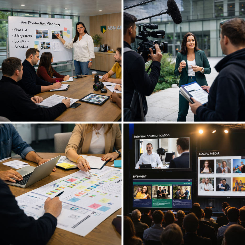 Precies de output die jouw organisatie op dat moment nodig heeft: onboarding video’s, explainers, een reeks testimonials, marketing content, leadership communicatie, een serie podcasts of doorlopende content voor meerdere teams.