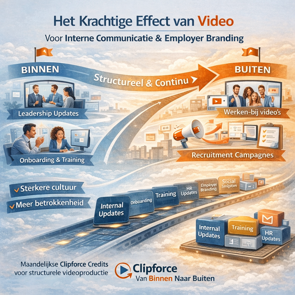Onze samenwerking verloopt uiterst soepel. Of het nu gaat om interne communicatie, marketing & sales, kennis & training of events & community, Clipforce schakelt snel en levert consistente kwaliteit binnen een heldere werkwijze.